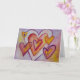 Cuadros de colores de corazones entrelazados como el amor de las relaciones de vida. Los colores son suaves malva lavanda, rosa, rojo, amarillo y dorado. Esta imagen es un tributo a todos los que amamos en nuestra vida. Las interrelacionadas conexiones del corazón del amor nos unen en alegría y celebraciones. También es amor por fortalecer nuestras almas para los desafíos de la vida. Personalice la tarjeta de saludo o nota de corazones con su propio texto e imágenes usando la opción de Personalizar. ¡Haz regalos especiales de El día de San Valentín, Boda, compromiso, bebé o tarjetas de felicitación de amor! Las ganancias de esta venta apoyan a la organización sin fines de lucro 501(c)3 DonnaBellas Angels.