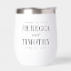 Los clásicos y elegantes tumblers de vino personalizado hacen de sus invitados un impresionante y único placer. El diseño de moda incluye "vítores al amor" en la parte superior, con sus nombres en bellos bloques tradicionales y letras de guiones conectados por un guión decorativo "y". Personalice la fecha con su boda debajo.