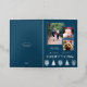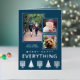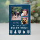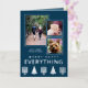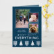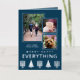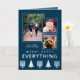 These simple 3 photo folded greeting cards in navy with real silver foil printing are perfect for your interfaith family. A row of glimmering menorahs and trees along with simple modern fonts keep the design uncluttered to showcase your family's pictures. These trendy interfaith holiday folded cards open to a medium blue with the option to add a personalized message for your blended Christmas and Hanukkah family.