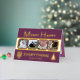 These simple 4 photo folded greeting cards in dark plum purple with real gold foil printing are a lovely choice for your interfaith family. A Hanukkah menorah on the left and a stylized Christmas tree on the right paired with simple modern fonts keep this MERRY HAPPY EVERYTHING design uncluttered so you can showcase your family's favorite pictures. These trendy interfaith holiday folded cards open to a medium purple with the option to add a personalized message for your blended Christmas and Hanukkah family and friends.