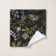 Intricate floral pattern with gold and white branches, leaves, and flowers on a black background. The design feels elegant and sophisticated.