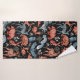 Illustrated woodland animals in red and blue, including foxes, bears, owls, and deer, are adorned with intricate patterns on a black background.