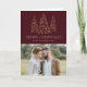 Carta de vacaciones moderna y elegante con una foto complementada por tres nevados Relieves metalizados dorados con fondo burdeos (o color de su elección). "Feliz Navidad" se muestra en una fuente serif moderna y blanca con tu nombre o texto personalizado debajo. El interior de la tarjeta de vacaciones plegada incluye el mensaje de su personalizado. La parte posterior de la tarjeta contiene una foto adicional.