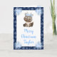 Esta tarjeta de Navidades de acuarela linda y caprichosa puede ser personalizada con un nombre o título, como mamá, hija, nieta, sobrina, amiga, etc. Cuenta con un adorable alce ártico sobre un fondo de copo de nieve azul marino con flores azules de invierno en las esquinas. El texto combina guiones manuscritos y sans serif para un estilo elegante y moderno. Los copos de nieve que caen y los hermosos arreglos florales azules dan un aire invernal.