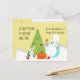 El cocinero del muñeco de nieve con la cuchara, árbol de navidad, calabaza, caída se va y un conejo que celebra un batir en un fondo nevoso en esta tarjeta del otoño o de la receta de la caída y del invierno.