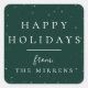 Elegantes estrellas blancas brillantes en verde esmeralda, pegatina personalizado de "Felices Fiestas". Diseñado para coincidir con nuestra Colección de Invierno de Spellbound.
