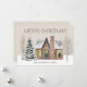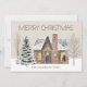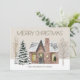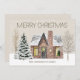 Tarjeta de saludo "Feliz Navidad" con una casa antigua de bonito rodeada de árboles desnudos y pinos cubiertos de nieve. Personalizado con su nombre o apellido. La parte posterior se deja en blanco para que pueda agregar su propio mensaje especial. Contáctame para obtener ayuda.