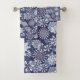 Cielo nocturno de invierno con toallas de baño con copos de nieve.