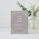 Esta tarjeta postal rústica de invierno gris para guardar la fecha es perfecta para su boda boho moderna de diciembre. Diseñada con sencillas flores navideñas y piñas sobre un fondo gris kraft. Seguro que completará su boda de Navidad elegante y minimalista. No dude en dejarla tal como está o personalizarla con sus fotos. También puede buscar otros artículos de esta colección para unir verdaderamente toda su boda de invierno.