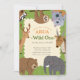 Prepárense para una celebración desenfrenada con nuestra invitación a la fiesta de cumpleaños animal 'The Wild One'. Perfecto para su día especial, esta invitación incluye adorables animales de la selva y un diseño vibrante que marca el tono para una aventura inolvidable. Personalizar todos los detalles para que sea lo único suyo e invita a tus invitados a unirse a la diversión salvaje.