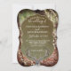 Escena forestal con hojas caídas en el suelo y lleno de árboles. Personalizar la invitación para satisfacer sus necesidades personales para el perfecto boda rústico.