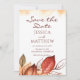 Esta elegante boda botánica de terracota Save the Date cuenta con hermosas flores acuáticas de otoño con tipografía sofisticada. En la parte posterior puedes subir tu foto. Este diseño atemporal es una excelente elección para una variedad de estilos, desde clásicos hasta rústicos. Póngalo en pareja con los temas de coordinación.