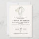 Celebre su día especial con estilo con esta elegante invitación de boda que presenta una paleta de colores neutros suaves y una delicada ilustración de cinta. Diseñada con simplicidad y encanto, esta invitación muestra los nombres de la pareja en una fuente de escritura elegante combinada con texto serif clásico para los detalles. La disposición limpia y los tonos neutros la hacen perfecta para bodas tradicionales, rústicas o modernas por igual.
