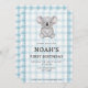 Invitación 001 Sky Blue Plaid Koala 1st Birthday Invitation