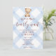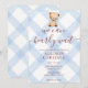 Invitación 003 Cobalt Blue Teddy Bear Gingham Baby Shower
