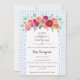 Soft watercolor roses bloom gently atop a graceful white scallop arch that frames this “A Little Wildflower is on the way” baby shower invitation. The word “Wildflower” is set in delicate script, finished with a dainty heart line swash that adds a tender flourish. Behind it all, a soft watercolor gingham backdrop lends a touch of timeless charm, creating a baby shower invitation that feels fresh, romantic, and beautifully heartfelt.