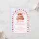 At the center of this baby shower invitation is the sweetest strawberry shortcake, framed by a scalloped border sprinkled with tiny strawberries like little kisses of summer. Set against a soft watercolor gingham backdrop, the whole design feels light, nostalgic, and delightfully fresh.