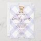 Invitación 005 Iris Oso de peluche lavanda a cuadros Baby Sho