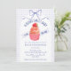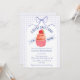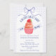 At the center of this baby shower invitation sits an adorable cupcake crowned with a sweet strawberry. A soft watercolor gingham backdrop and a delicately tied bow complete the look, creating a celebration that feels warm, whimsical, and beautifully inviting.