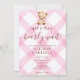 Invitación 009 Fuchsia Pink Teddy Bear Gingham Baby Shower