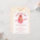 At the center of this baby shower invitation sits an adorable cupcake crowned with a sweet strawberry. A soft watercolor gingham backdrop and a delicately tied bow complete the look, creating a celebration that feels warm, whimsical, and beautifully inviting.