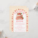 At the center of this baby shower invitation is the sweetest strawberry shortcake, framed by a scalloped border sprinkled with tiny strawberries like little kisses of summer. Set against a soft watercolor gingham backdrop, the whole design feels light, nostalgic, and delightfully fresh.