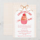 At the center of this baby shower invitation sits an adorable cupcake crowned with a sweet strawberry. A soft watercolor gingham backdrop and a delicately tied bow complete the look, creating a celebration that feels warm, whimsical, and beautifully inviting.