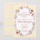 This editable shower invitation brings sweet charm with it's brushed flowers & bows on a watercolor gingham background.