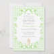 Invitación 017 Moss Green Scroll Gingham Cross Candle Baptism