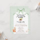 A sweet illustration of a squirrel cradling an acorn delivers added charm to this "A Little Acorn is on the Way" themed baby shower invitation. Rustic cottagecore appleal is added with a watercolor bow & a watercolor gingham background.