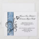 Remolinos florales negros con una franja azul variada. Se muestra en papel metálico helado, pero puedes cambiar el papel si lo deseas. Personaliza con tu propia información. Si necesitas mover el texto, o cambiar el tamaño, la fuente o el color, ¡Haz clic en Personalizar! Esto es perfecto para la novia con presupuesto limitado porque la información de RSVP está incluida en la parte posterior. Si deseas un RSVP separado o necesitas ayuda, por favor envía un correo electrónico a shutterbug600@yahoo.com