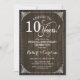 Diseño rústico elegante con patrón de madera marrón oscuro y letra script blanca. ¡Salud por 10 años! ¡Se puede personalizar para cualquier año de matrimonio! Envíame un mensaje si necesitas más personalización.