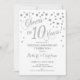 Diseño elegante con falso brillo plateado y blanco. ¡Salud por 10 años!