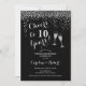Invitación de aniversario de bodas de 10 años. ¡Salud por 10 Años! Diseño elegante en negro y plata. Cuenta con copas de champán, fuente de escritura y confeti. Perfecto para una celebración elegante de 10 años de matrimonio. Impreso en invitaciones Zazzle o plantilla digital de descarga instantánea. ¡Se puede personalizar para mostrar cualquier año! Personaliza con tus propios detalles.