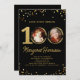 Celebre con estilo con esta divertida y festiva invitación a la fiesta de cumpleaños número 100, que incluye la foto de la persona de cumpleaños enmarcada por falsos acentos purpurinas de oro y un impresionante fondo negro. Clásico y elegante pero super divertido y festivo - la invitación perfecta para hacer que el chica/tipo de cumpleaños se sienta especial. Por favor, revisa la colección de cumpleaños llena de decoración y suministros de cumpleaños coincidentes. Esta invitación está disponible en versión impresa y en descarga instantánea.
