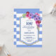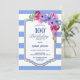Invitación a la fiesta de cumpleaños 100 con flores de rayas azules.