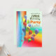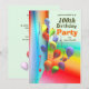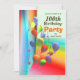 Una brillante tarjeta de invitación para la fiesta de cumpleaños número 100 con coloridos globos de fondo. Personalizar el texto al frente con el nombre de la persona, y al dorso con la fecha, dirección, etc. para tu evento!
