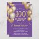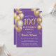 Invitación 100.º cumpleaños Globos Purpurinas morados y dorad