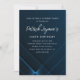 Moderno y Minimalista Dark Blue 100th Birthday Surprise Party Invitación con un sofisticado patrón geométrico de neón. En realidad aparece un texto blanco brillante en el fondo azul oscuro.