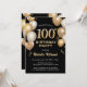 Invitación 100.º natalicio Globos de Purpurina Negro y Oro