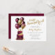 Esta hermosa invitación a la fiesta de cumpleaños número 100, que incluye una torta de oro y borgoña de dos capas con globos de oro y burdeos, el número 100 en oro y las palabras cien en oro con una letra de escritura moderna, sería perfecta para celebrar a tu esposa, hermana, amiga, mamá, tía, abuela, bisabuela. Es tradicional y clásico, fresco, moderno y contemporáneo. La parte de atrás es un bonito Relieve metalizado burdeos de coordinación.