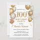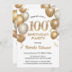100.º cumpleaños Invitación de cumpleaños a Purpurinas blancos y de oro. Para una mayor personalización, haga clic en el botón "Personalizar" y utilice nuestra herramienta de diseño para modificar esta plantilla.