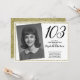 Invitación 103 cumpleaños personalizado foto blanco y dorado