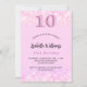 Una invitación moderna, elegante y glamurosa para una fiesta de cumpleaños número 10 de los chicas. Un fondo rosa y rubio con confeti. El nombre está escrito con una escritura de estilo con letras a mano moderna. Personalice y agregue los detalles de su fiesta. El número 10 se escribe con un tipo de letra, guión.