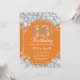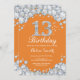 Invitación 13.º Naranja de cumpleaños y diamante plateado