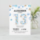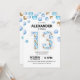 Invitación 13.ª fiesta de cumpleaños, globo azul y oro