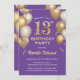 Invitación 13.º cumpleaños: Globos Purpurinas morados y dorad