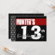 Invitación 13.º cumpleaños moderno para él rojo blanco negro