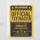 Celebrate the leap into the teen years with this “Warning: Official Teenager” 13th birthday invitation. Created especially for a 13-year-old boy, it features bright colors and bold visuals that make it stand out. Fun and lighthearted, this invitation sets the tone for an exciting tween-to-teen birthday party and is sure to make your guests smile.