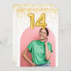 Confeti de oro lindo y foto de arco invitación a la fiesta de cumpleaños 14 para su fiesta de cumpleaños 14. Personalizar con foto en la parte delantera y detalles del fiesta en la parte posterior.